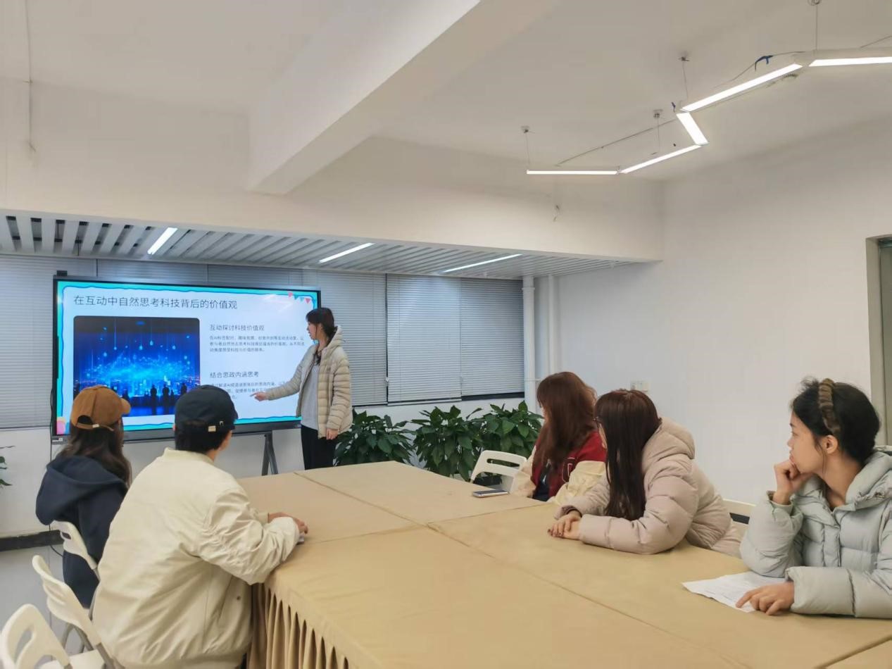 活动围绕 AI 时代的价值伦理与社会责任展开,设置多个趣味互动环节。同学们通过 “AI 标签配对” 快速组队,在 “思政贴点墙” 投票聚焦科技伦理与社会责任;“AI 成语谜图” 竞猜环节将传统文化与思想引领结合,在趣味答题中传承精神内核;核心创意环节里,各小组围绕 “AI + 思政” 开展头脑风暴,提出多个兼具人文关怀与实践价值的创意提案,为后续实践打下基础。