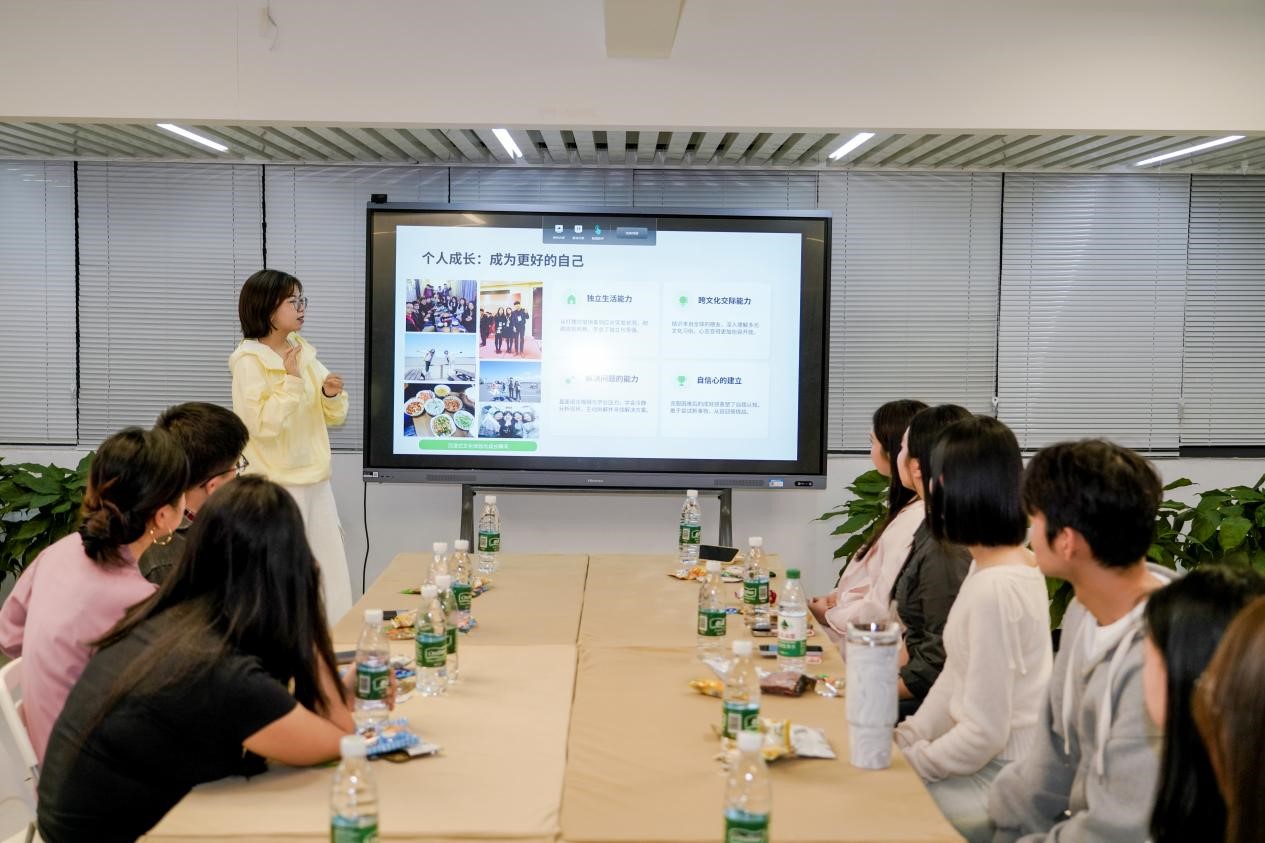 活动以轻松互动贯穿全程,环节丰富且贴合学生需求。破冰环节中,参与学生依次自我介绍,用真诚问候打破陌生壁垒,搭建起友谊的第一座桥梁;“韩语初体验”环节里,大家共同学习韩语日常用语、传唱韩语歌曲,歌声交织,尽显跨文化交融之美。核心分享环节,“文创导航”工作室教师结合自身留学与就业指导经验,详细解读国际就业规划、海外升学路径及学校国际合作资源,为学生提供实用指引;相关代表分享海外学习、实习及跨国就业实战经历,让同学们直观了解国际职场需求,明确职业提升方向。活动尾声,参与学生围坐畅谈,互聊兴趣、美食与校园生活,工作室还为参与者赠送专属文创礼品,定格跨文化友谊的温暖瞬间。